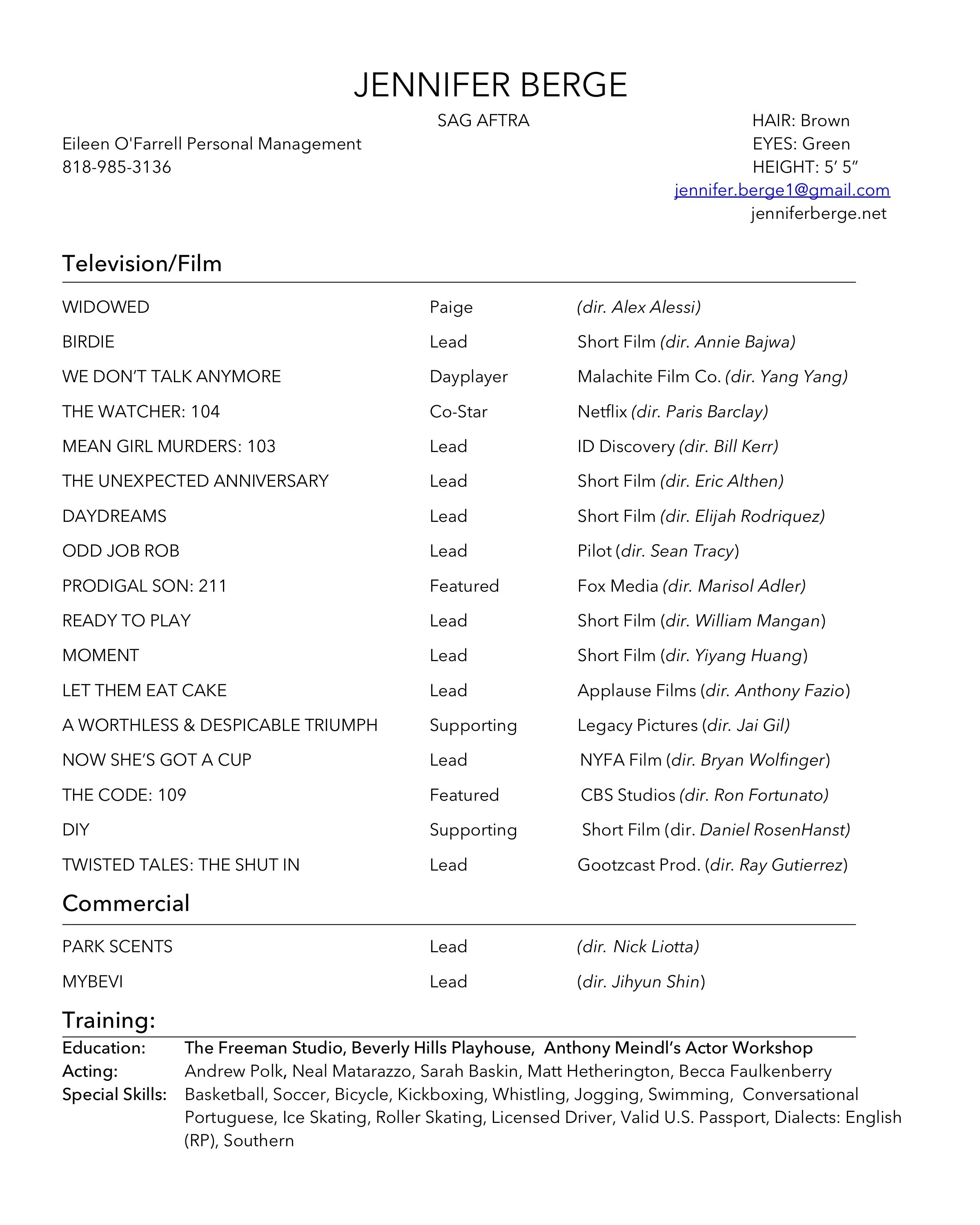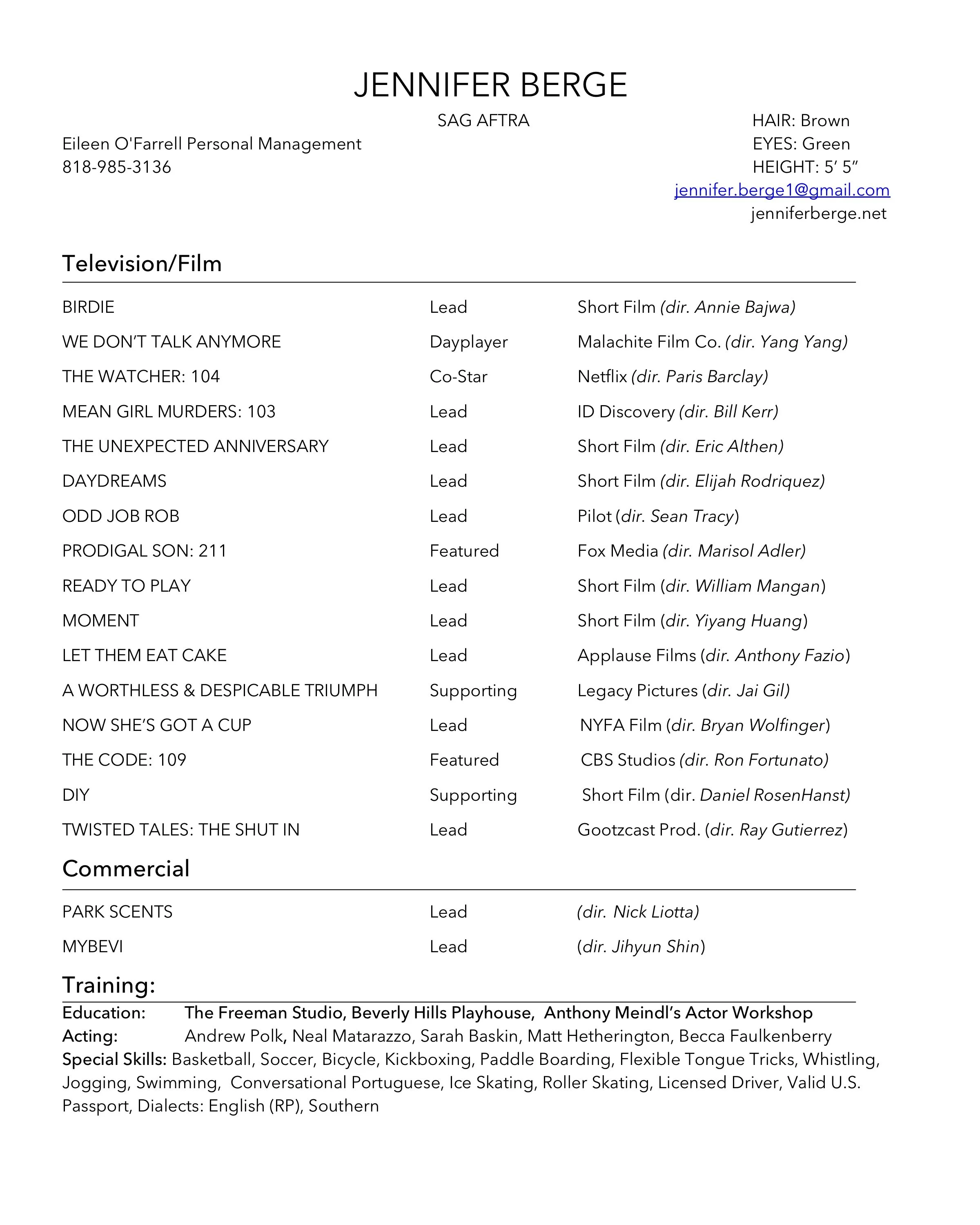 Jennifer Berge Film Reel